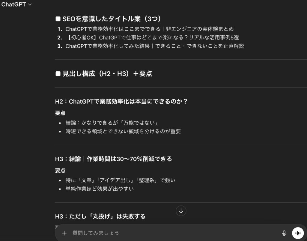 ChatGPTで業務効率化はどこまでできるか(実体験ベース)【出力してほしい内容】