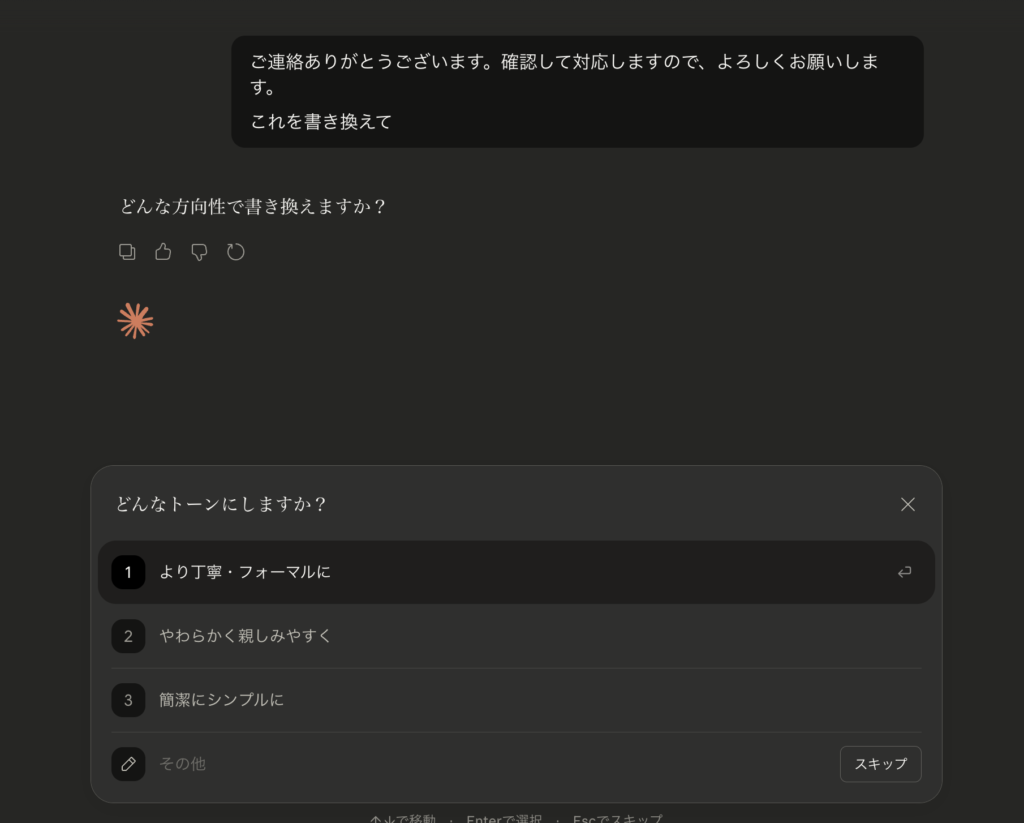 実際にClaudeに投げてみたら、書き換えの方向も選択式で提案してくれました。