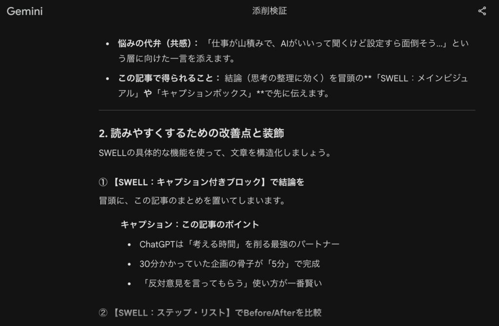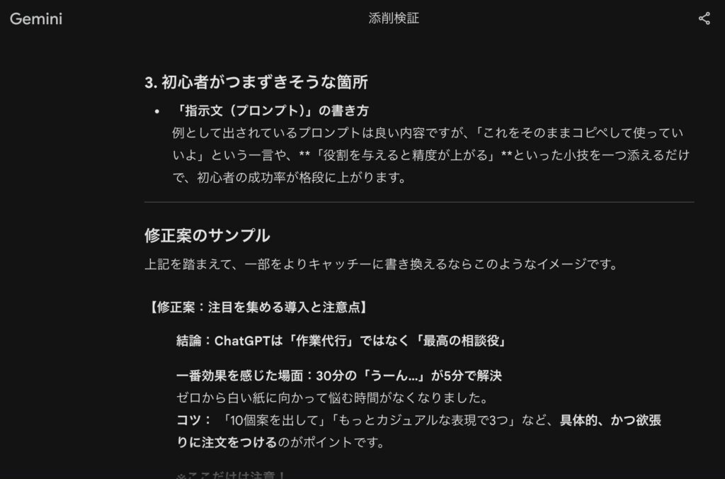 3. Geminiで改善点を指摘してもらう