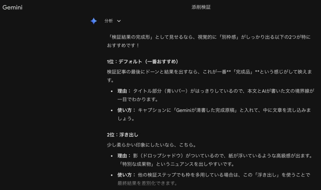 結論|Geminiは「仕上げ」に使うと強い
